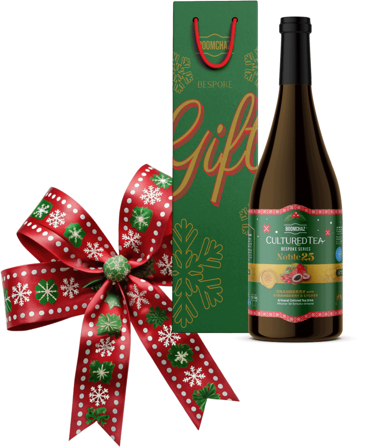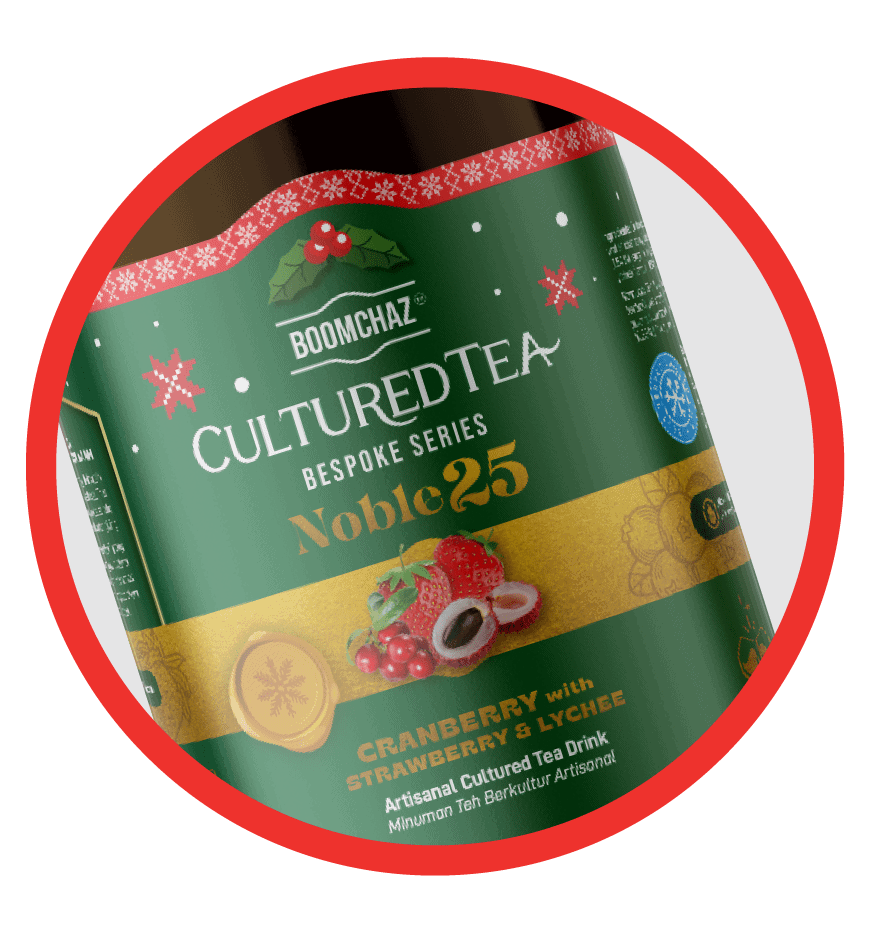 From the heart of Boomchaz Bespoke Collection comes NOBLE 25, a festive creation crafted for the season of giving. Blending the elegance of strawberry, cranberry, and lychee, this artisanal cultured tea captures the warmth of togetherness, the sweetness of gratitude, and the sparkle of celebration.