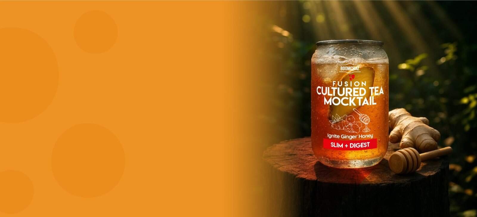 Spicy and warming with a hint of sweetness. A bold fusion of ginger, honey, and cultured tea to support digestion and help you feel light and balanced.